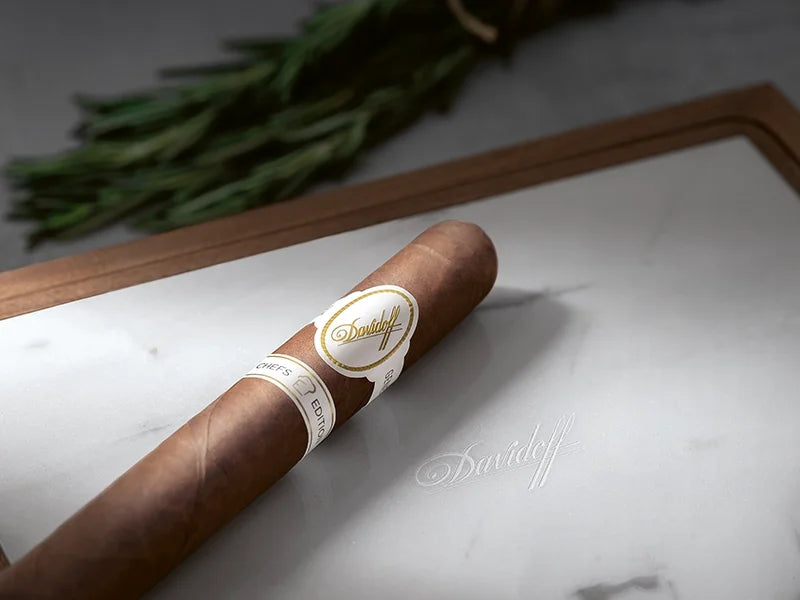 複雑かつ洗練されたブレンドを実現するため、ダビドフのマスターブレンダーは、ドミニカ共和国、メキシコ、エクアドルの多彩な葉を用いて幾度も丹念に試作を重ねました。その中には、15年熟成を経たドミニカ産サン・ビセンテ葉、爽やかなレモンのニュアンスをもたらすドミニカ産ハイブリッド葉、そしてヤグア梱包で熟成させたドミニカ産ピロト葉が含まれています。