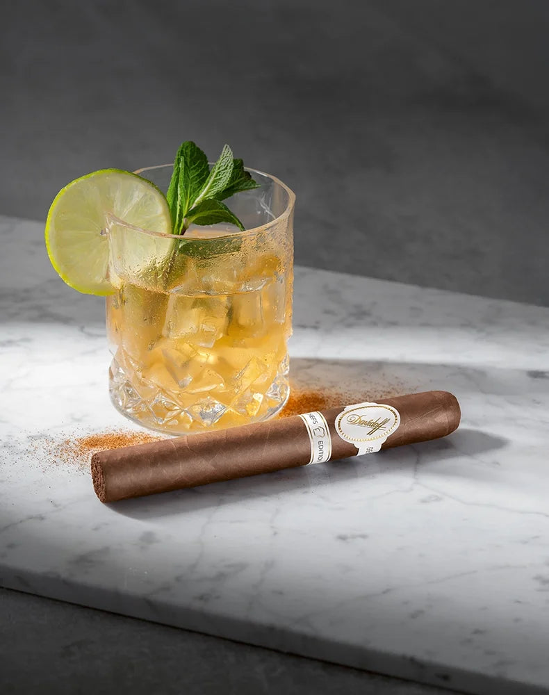 ヴァージン・モスコミュールの温かなスパイス ― 生姜の鮮烈な香り、甘やかなシナモンハニー、そして爽やかな柑橘が、シガーの複雑な味わいと見事に溶け合います。